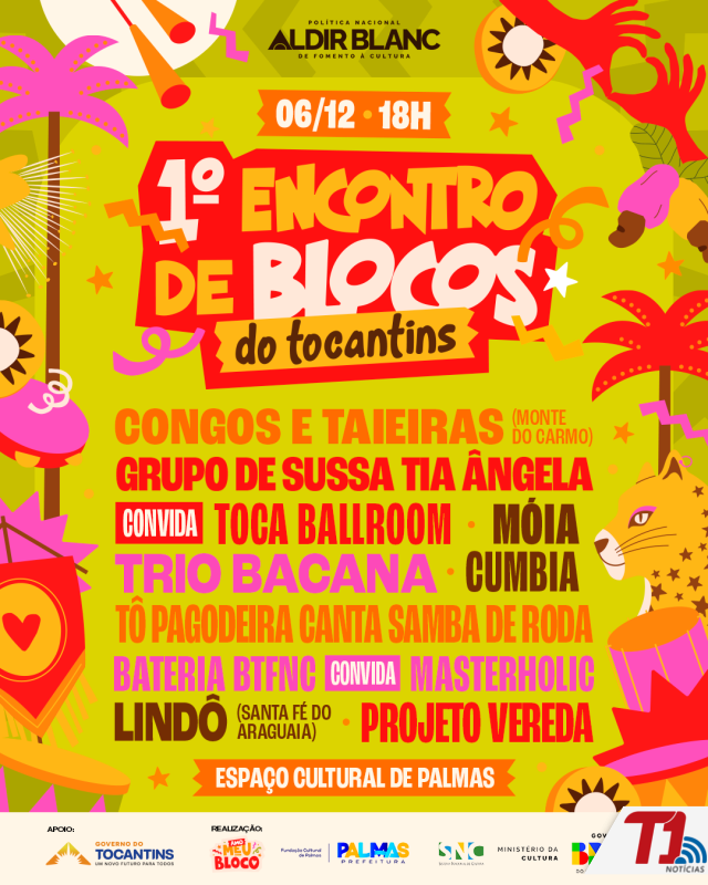O Espaço Cultural de Palmas se transformará neste sábado, 6, no epicentro da cultura tocantinense. A partir das 16h, na grande praça do Espaço Cultural, será realizado o 1º Encontro de Blocos do Tocantins, que marca o início da temporada 2026 do Coletivo Meu Bloco. O evento, porém, vai além do carnaval e se funde ao Festival de Culturas Populares e Tradicionais do Tocantins para potencializar a celebração, gratuita e aberta ao público.