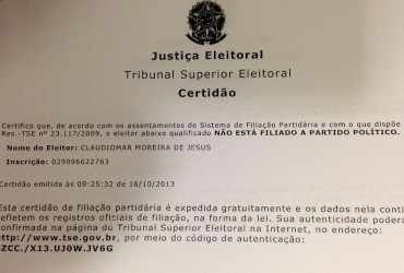 A chapa eleita estaria em desacordo com o Estatuto do partido, já que duas pessoas que não eram filiadas ao PMDB compunham a chapa vencedora. Trata-se de Claudiomar Moreira de Jesus e Hélio Morais Junior que, segundo certidão do Tribunal Superior Eleitoral, não estão filiados a nenhum partido político.