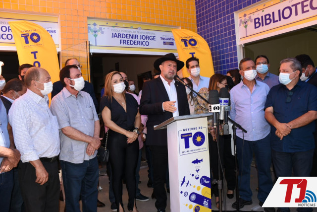 Ao lado do governador Mauro Carlesse, Andrade e dezenas de autoridades participaram da solenidade que deu início às primeiras matrículas da Escola de Tempo Integral, recém inaugurada, Jardenir Jorge Frederico.
