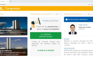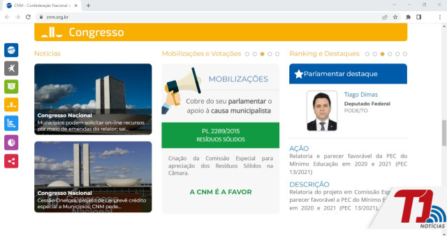 A atuação do deputado federal Tiago Dimas (Podemos-TO) à frente da relatoria da PEC 13/2021 (Proposta de Emenda à Constituição n° 13) fez a Confederação Nacional dos Municípios (CNM) apontar o congressista tocantinense como “parlamentar destaque” do municipalismo.