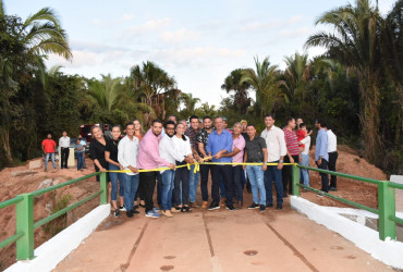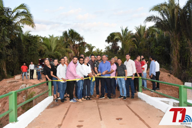 Foram inauguradas as obras de melhoria da ponte sobre o córrego Saltinho, que antes era de madeira, e de pavimentação da estrutura da Feira Coberta Henos Belmiro Souto.