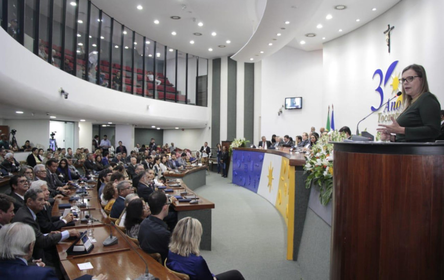 A Assembleia Legislativa realizou na manhã desta terça-feira,21, sessão solene em comemoração aos 30 anos da Capital. Durante a sessão a deputada estadual Claudia Lelis, PV, reforçou que é preciso união, parceria e a participação de todos na construção da Cidade. A deputada pediu a todos presentes uma reflexão sobre a Palmas que todos desejam para os próximos 30 anos.