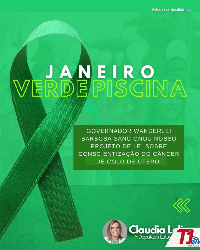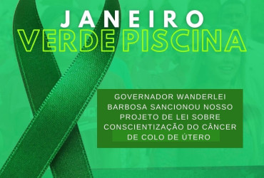A Lei n° 3877 publicada no Diário Oficial do Estado (DOE) da última sexta-feira, 07, de autoria da deputada estadual Claudia Lelis (PV), institui a campanha de prevenção do câncer do colo do útero, denominado “Janeiro Verde Piscina”.