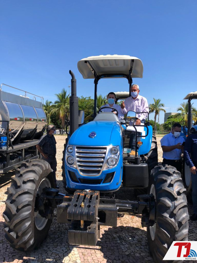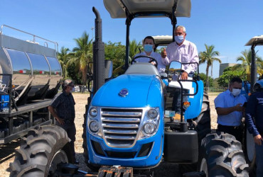 Além disso, foram distribuídos uma colhedora de forragem, um sulcador e uma roçadeira, entregues junto com o trator para associação dos agricultores de Riachinho.