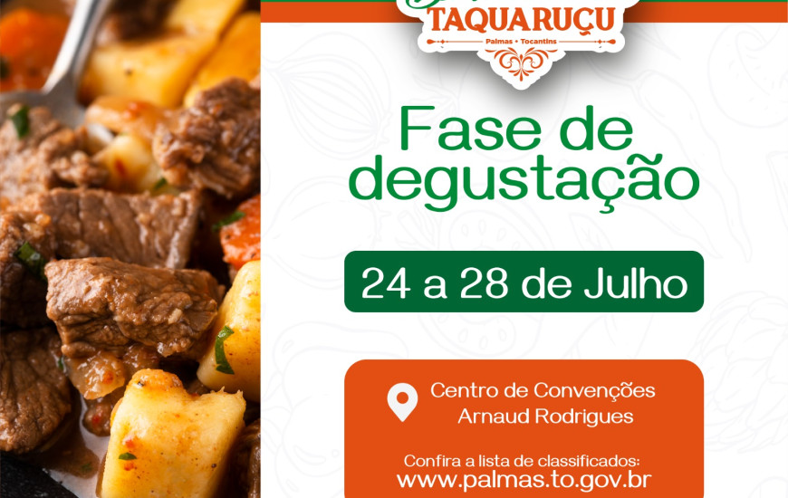 O evento será realizado de 6 a 10 de setembro, em Taquaruçu, com a previsão de participação de 47 concorrentes. Este ano, dentre as novidades anunciadas pela Prefeitura de Palmas há a ampliação da categoria vegetariana, para Saúde e bem-estar, que estende as opções de preparações para intolerantes a lactose e para o público que busca por opções light e diet. E por fim, o aumento no valor das premiações, passando de R$ 72 mil para R$ 114 mil. Agora serão R$ 10 mil para os primeiros lugares, R$ 6 mil para os segundos lugares, e R$ 3 mil para os terceiros, em cada categoria.