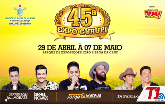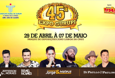 A maior feira de agronegócios do Sul do Tocantins, a 45ª Exposição Agropecuária de Gurupi começa neste sábado, 29, com várias atrações e os shows de Jefferson Moraes e Israel Novaes. O evento segue até o dia 6 de maio e ainda terá ainda as apresentações das duplas Jorge e Mateus, Di Paulo e Paulinho, Banda Cassikó e mais. A programação está diversificada, com parque de diversão, até rodeios, área de alimentação e as oportunidades de negócios. Durante a feira, o Parque de Exposição João Lisboa da Cruz terá uma média de 200 expositores. Além disso, se manterá a tradicional garota expo e garota expo mirim. Nas duas categorias, o sindicato oferecerá premiações.