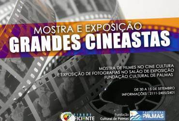 A Fundação Cultural de Palmas realiza a Mostra e Exposição Grandes Cineastas com 14 fotografias de grandes diretores do cinema na Galeria Municipal de Artes e, simultaneamente, a exibição de suas obras no Cine Cultura a partir do dia 31 de agosto.