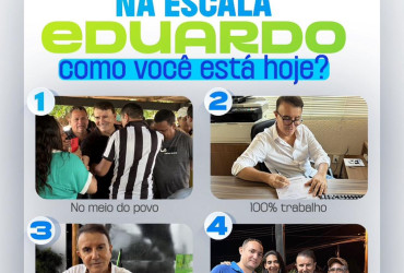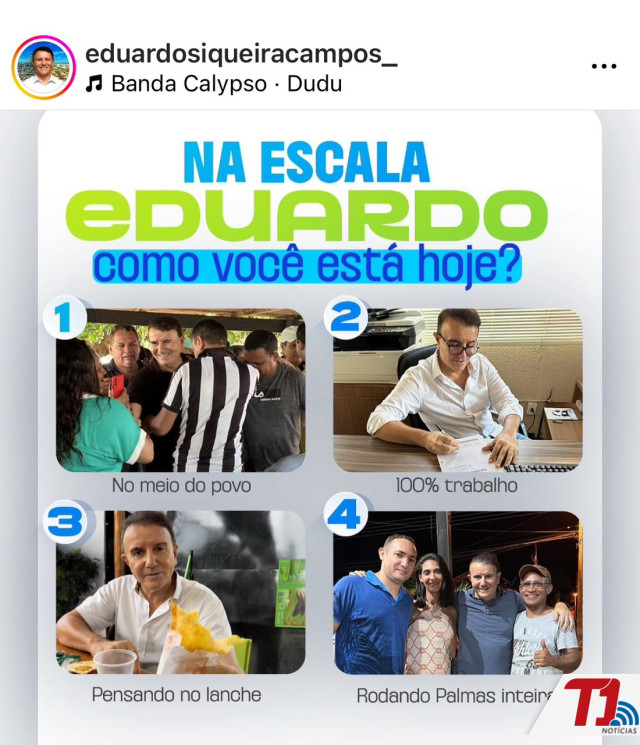 Com a ajudinha do influencer e apresentador de TV @juniorsheishii, que começou a postar a música "Dudu", da Banda Calypso, para ilustrar os posts em que comenta ações de Eduardo Siqueira, a rede do pré-candidato tem alternado enquetes para escolher foto, vídeos de áudio de seguidores, como o que viralizou de uma eleitora popular falando com a Polyana, esposa do Eduardo.