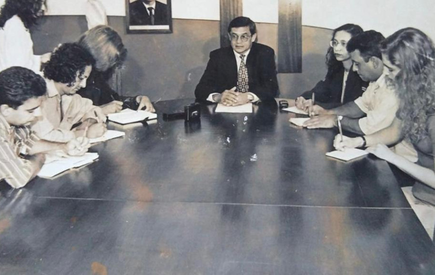 E viemos convivendo, nos reencontrando sempre na lida da notícia. Guardei esta foto de uma coletiva promovida por mim, à época Diretora de Comunicação da Assembleia Legislativa, para o saudoso e querido Raimundo Moreira. Nela se vê Gilson no seu primeiro papel: o de jornalista. O poeta foi crescendo e evoluindo dentro dele, para uma escrita cada vez mais descompromissada com a forma, mas apurada no sentimento.