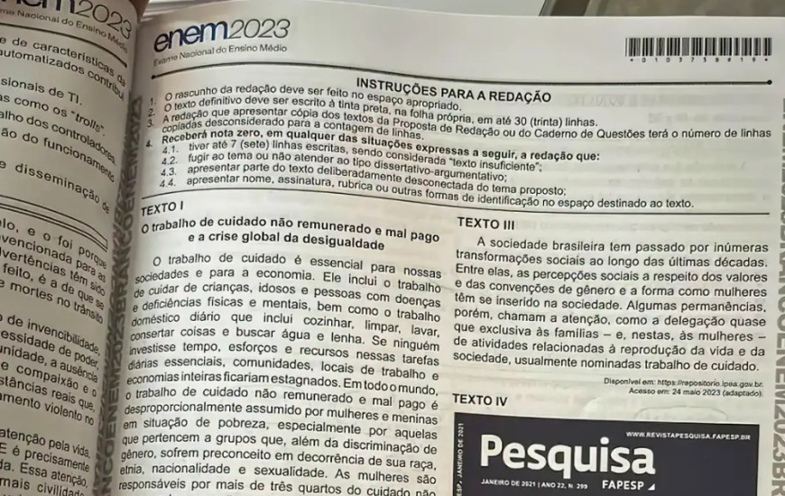 No dia 3 de novembro, primeiro dia do exame, os participantes deverão escrever um texto dissertativo-argumentativo de até 30 linhas. Será proposta uma situação-problema, que servirá de base para o desenvolvimento da redação.