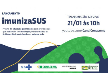 O Conselho Nacional de Secretarias Municipais de Saúde (Conasems), lançará na próxima quinta-feira, 21, às 10h, o projeto ImunizaSUS que pretende transformar as Unidades Básicas de Saúde em salas de aula para capacitar mais de 94 mil profissionais de saúde que atuam diretamente nas ações de imunização contra a Covid-19 em municípios de todo o país. O lançamento do projeto será transmitido ao vivo pelo Canal do Conasems no YouTube.