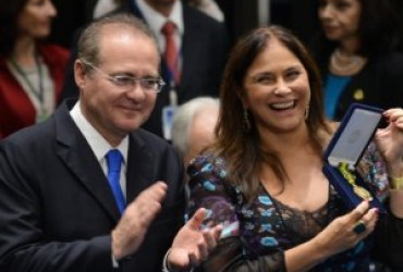 Emocionada, a cantora Fafá de Belém, sempre lembrada por sua militância pelas eleições diretas para presidente na década de 1980, interpretou o Hino Nacional. Em homenagem aos artistas que mobilizaram o povo pela convocação da Constituinte, Fafá também foi condecorada.“Em 1964, eu morava em São Paulo e vi, com 7 anos de idade, as tropas entrarem pela 9 de Julho; em 1984, eu voltava a morar em São Paulo e vi o povo brasileiro tomar conta de São Paulo, do Rio, do Brasil inteiro, numa grande onda verde e amarela e declarar que a democracia estava de volta”, disse a cantora.