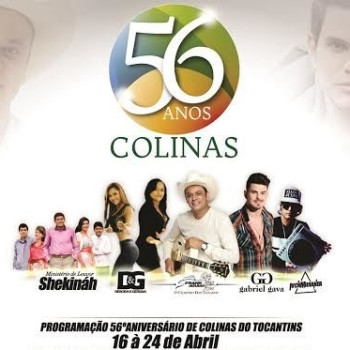 No dia 21 de abril Colinas do Tocantins comemora 56 anos e para celebrar a data a Prefeitura e parceiros estão promovendo uma festa cuja programação compreende de 16 a 24 de abril. Diversas atividades esportivas, como corrida de rua, motocross, bicicross, jogos de futebol,...