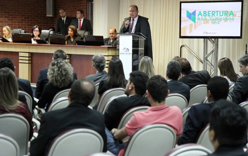 O Ano Judiciário de 2016 no Tocantins foi aberto na tarde desta quinta-feira (4/2), em sessão solene no Pleno do Tribunal de Justiça do Estado do Tocantins (TJTO), sob a presidência do desembargador Ronaldo Eurípedes. Além dos magistrados e servidores, autoridades e representantes do Estado participaram da solenidade, entre elas o governador Marcelo Miranda, o presidente da Assembleia Legislativa, deputado Osires Damaso, o procurador geral de Justiça, Clenan Renault de Melo Pereira, o arcebispo metropolitano de Palmas, Dom Pedro Brito Guimarães, e o presidente da OAB – seccional do Tocantins, Walter Ohofugi Júnior. Em seu discurso, o presidente Ronaldo Eurípedes lembrou que a solenidade marca, do ponto de vista protocolar, o início dos trabalhos do Poder Judiciário tocantinense, “que na realidade é ininterrupto, pois é realizado 24 horas por dia através do processo 100% eletrônico”, esclareceu. “Depois de um ano de gestão”, disse o presidente, “sinto-me gratificado em constatar que o Poder Judiciário do Tocantins caminha em trilhos certos, pois o sentimento de unidade, comprometimento e resgate de um protagonismo histórico a que o Poder Judiciário brasileiro fez frente nos momentos importantes da República se repete agora”.