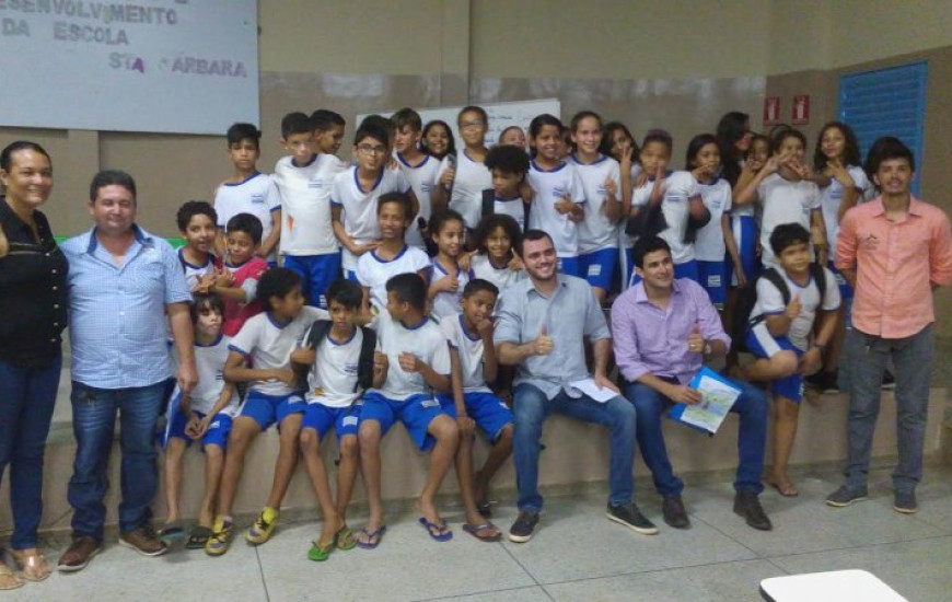 A culminância do projeto “Cidadania na Escola: atribuições de um vereador” foi realizada na tarde desta quinta-feira, 20, na Escola de Tempo Integral Santa Bárbara, em Palmas, onde os vereadores eleitos Tiago Andrino, Leo Barbosa e Vandinho da Cerâmica, todos escolhidos por sorteio, receberam da mão de cada aluno finalista uma redação. Durante o projeto, os alunos participaram de um concurso de redação sugerindo ações e ideias para os vereadores eleitos para próxima legislatura, sendo finalistas os três melhores textos. Segundo o professor e idealizador do projeto, Ramon Capital, o objetivo é fazer os discentes conhecer as verdadeiras atribuições de um vereador, despertar o senso crítico e consciência política dos alunos.