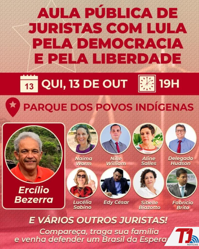 A aula pública de juristas com Lula, pela democracia e pela liberade, acontece nesta quinta-feira, 13, às 19h, no Parque dos Povos Indígenas, em Palmas. "Uma aula onde diversos juristas vão explicar alguns pontos que são importantes e alvos de fake news e, sobretudo, resguardar os valores da democracia", ressaltou o advogado Nile William, que participará do encontro.