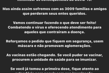 Reforçamos o pedido para que fiquem em segurança, usem máscara e não promovam aglomerações.