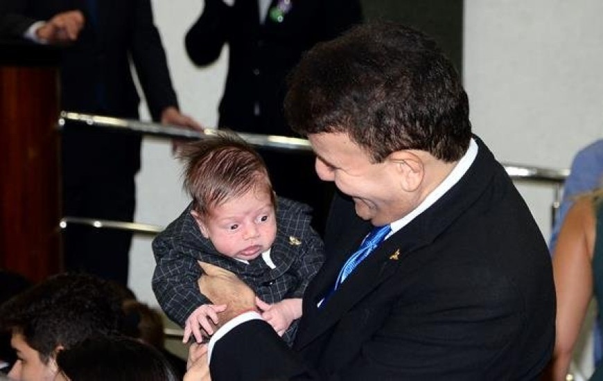 O deputado estadual Eduardo Siqueira Campos (PTB) levou seu filho de menos de um mês de vida para prestigiar sua posse na Casa de Leis neste domingo, 1º de fevereiro. Samuel nasceu no dia 13 de janeiro. Com apenas 20 dias de vida e vestido a carater, o pequeno chamou a atenção dos presentes.