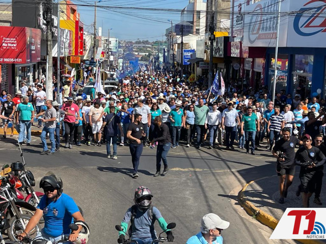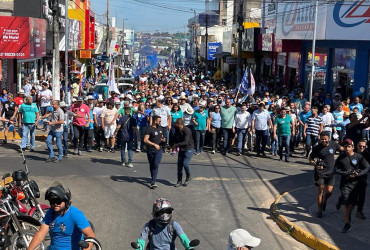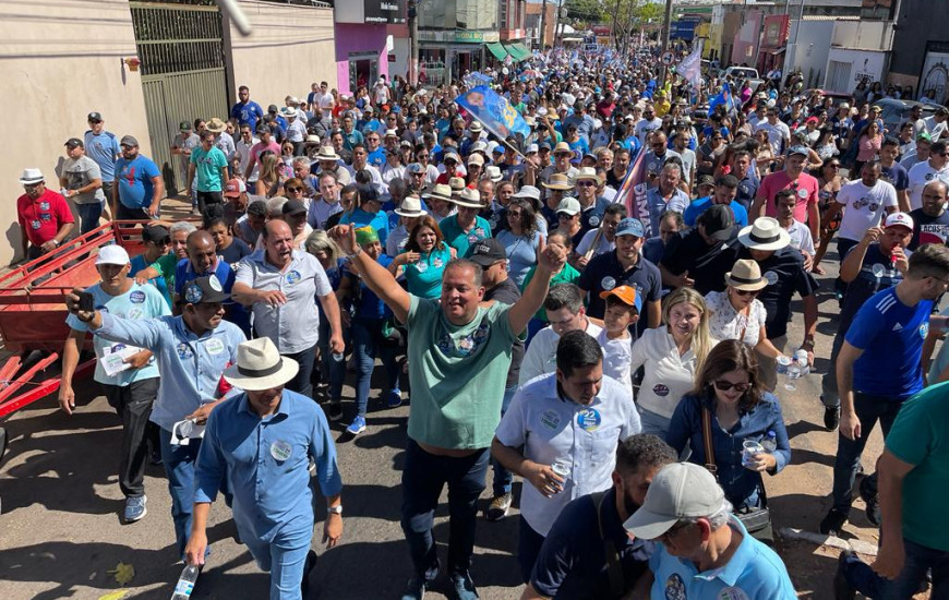 Em campanha, o governadoriável Ronaldo Dimas (PL) caminha neste sábado, 20, pelas ruas de Araguaína ao lado do senador Eduardo Gomes (PL), do deputado federal e candidato à reeleição, Tiago Dimas (Podemos), do vice-prefeito de Araguaína, Marcus Marcelo (PL) com a esposa, Fernanda Martins, e Carlos Amastha (PSB). Também participam da caminhada deputados federais, candidatos à reeleição, e os candidatos a deputado estadual, além de vereadores, prefeitos e líderes políticos da região.
