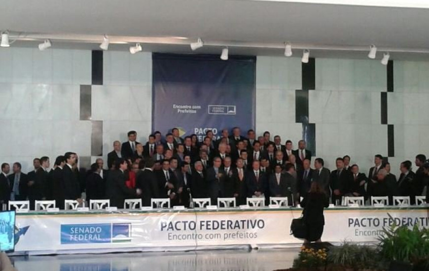 Um grupo de 70 prefeitos se reuniu com parlamentares no Congresso Nacional, nesta quarta-feira, 17, para tratar do Pacto Federativo, a desoneração dos impostos sobre as tarifas de ônibus e a não criação de ônus para as prefeituras sem uma prévia contrapartida de receitas. Presente no encontro, o prefeito de Palmas, Carlos Amastha (PSB), disse que no momento de crise vivenciado no Brasil a união de forças é bem vinda. "Existem problemas comuns a todas as prefeituras e obviamente que muitas das soluções passam por essas Casas. Mas, é preciso equilibrar as finanças e não comprometer o futuro das prefeituras", ressaltou.