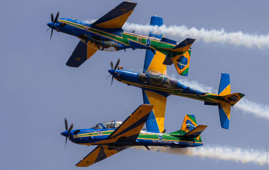 Reconhecida mundialmente, a Esquadrilha da Fumaça promove apresentações com acrobacias de alta precisão que encantam o público e reforçam o papel educativo e integrador das Forças Armadas