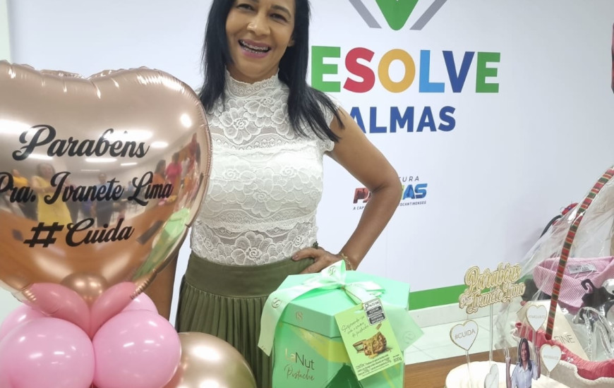 Aniversário da querida Ivanete secretária de governo. Divertida, inteligente, ela ganhou a cidade como candidata a vice do Geo. Seu mote “cuida Palmas” ganhou a boca de muita gente. Recebeu homenagem pelo aniversário hoje no Resolve Palmas. Toda equipe, capitaneada pela diretora da unidade de Taquaralto, Iran Leite, fez questão de demonstrar o apreço e carinho por ela.