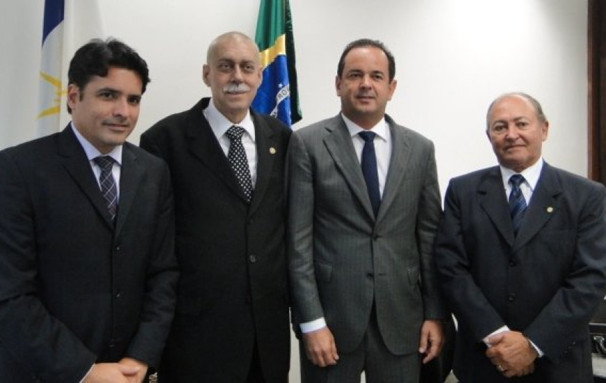 O senador João Ribeiro (PR-TO) reuniu nesta quarta-feira (9/10), em seu gabinete em Brasília, com o empresário e presidente da Federação das Indústrias do Estado do Tocantins (FIETO), Roberto Pires, com o deputado federal e presidente estadual do PP, Lázaro Botelho (PP-TO) e com o presidente estadual do PV, Marcelo Lelis. Durante a conversa de mais de duas horas, eles discutiram sobre as alianças para as eleições 2014 e o futuro do Tocantins.