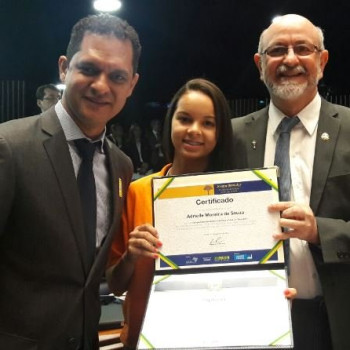 O secretário da Educação do Tocantins, Adão Francisco de Oliveira e o senador Donizete Nogueira (PT) participaram da posse da jovem senadora, Adrielle Moreira de Souza, 1ª colocada do concurso Jovem Senador no Tocantins, com a redação "Cidad&ati...