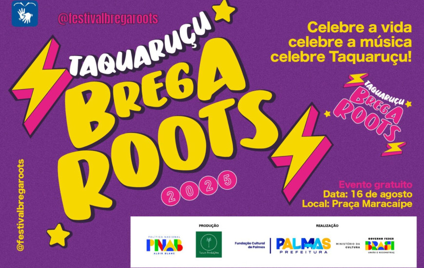 O 3º Festival Brega Roots acontece neste sábado, 16, a partir das 9 horas, no núcleo da Fundação Cultural de Palmas (FCP), Casa da Cultura Professora Maria dos Reis, localizada na Praça Joaquim Maracaípe, no distrito de Taquaruçu. O evento, totalmente gratuito, é voltado aos fazedores de cultura da Capital, e oferecerá oficinas de dança e shows musicais de diferentes ritmos amazônicos, com acessibilidade para pessoas com deficiência (PCDs).