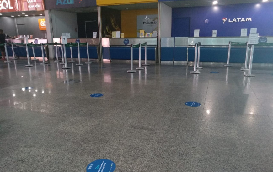 As marcações alertam para a necessidade de manter o distanciamento de 2 metros entre pessoas e as formas de prevenção do vírus. Nos elevadores, por exemplo, os comunicados também pedem a ocupação máxima de duas pessoas e, nos banheiros, instruem como lavar bem as mãos. Além disso, os check-ins agora contam com proteção acrílica para a proteção de passageiros e atendentes das companhias aéreas.