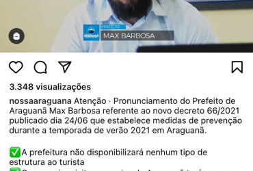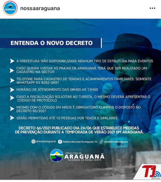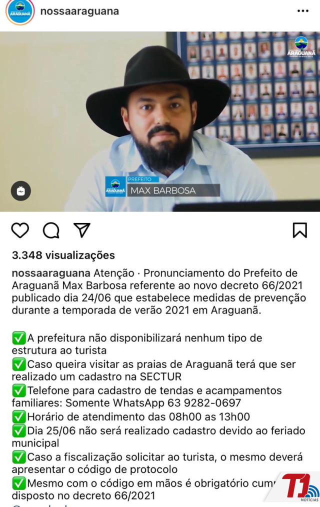 A prefeitura de Araguanã publicou no último dia 24 decreto com as regras para realização da temporada de praias no município. Neste sentido, a Promotoria de Justiça de Xambioá encaminhou, ontem, 30, recomendação ao prefeito Max Barbosa (PL) para que não promova, autorize ou incentive qualquer evento da temporada de praia com conotação de show ou festa, bem como que realize fiscalização nas praias a fim de coibir eventos particulares.