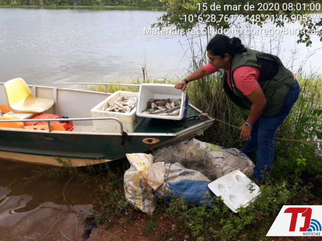 Agentes do Instituto Natureza do Tocantins (Naturatins) apreenderam cerca de 600 metros de redes de pesca, caixas térmicas para armazenamento de peixes, além de 40 quilos de pescado de diversas espécies. A ação de fiscalização foi realizada no domingo, 15, após o órgão ambiental receber denúncia de que estava ocorrendo pesca predatório no Ribeirão Santa Luzia, afluente do Lago de Palmas.
