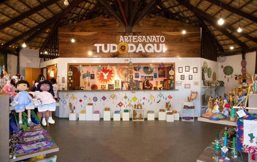A loja “Artesanato Tudo Daqui” foi reinaugurada com novo visual e novos produtos para melhor atender e encantar seus clientes, que já são cativos de turistas e visitantes do Distrito. A comunidade agora conta com local aprazível para estar e fazer compras, conhecer os trabalhos dos agentes locais e viver experiências por meio das oficinas, gerando renda e inclusão social, possibilitando atendimento diferenciado aos turistas e visitantes que encontra em único local produtos de vários artesãos do Distrito.