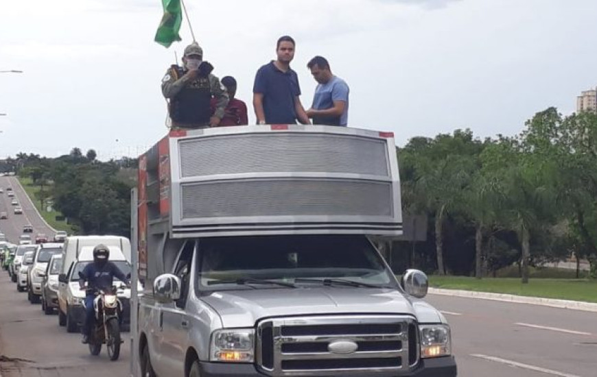Uma carreata, que teve início na Avenida JK e seguia para Taquaralto na manhã desta sexta-feira, 27, contra decreto da Prefeitura de Palmas, que estabeleceu o fechamento do comércio da Capital. Em cima de um carro de som, o ato foi comandado pelo proprietário de um portal de notícias de Palmas, Gleydson Ricardo, e um ex-candidato a vereador, conhecido como Cirley do Carro de Som.