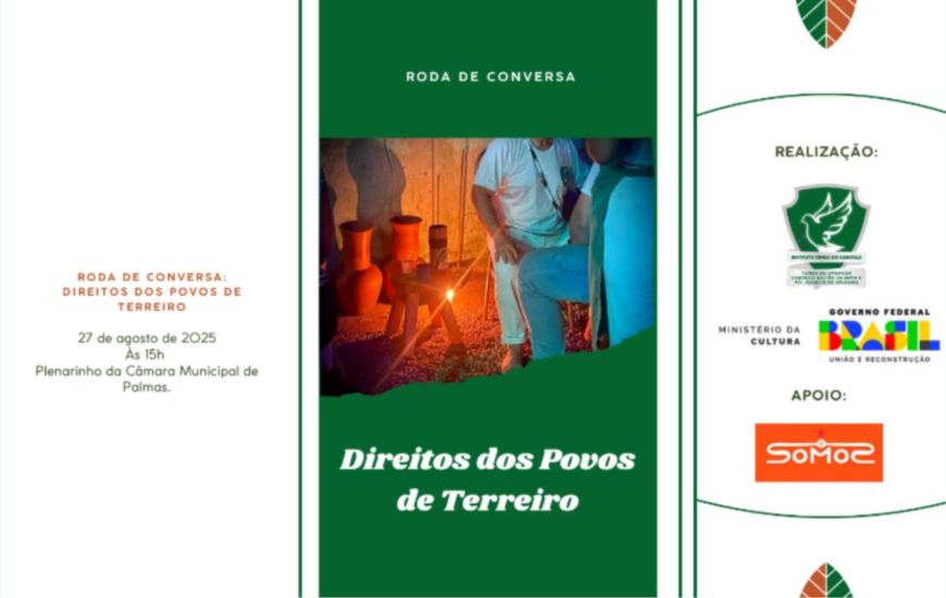 Nesta quarta-feira, 27 de agosto, às 15h, o Plenarinho da Câmara Municipal de Palmas receberá a Roda de Conversa “Direitos dos Povos de Terreiro no Tocantins”, um encontro que reúne lideranças religiosas, representantes do poder público, autoridades jurídicas e militantes sociais em defesa da igualdade racial e da liberdade religiosa.