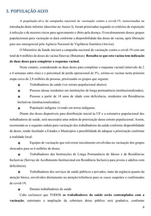 O documento citado pela prefeitura corresponde ao informe técnico divulgado pelo Ministério da Saúde (MS) quando as primeiras vacinas contra a Covid-19 foram distribuídas aos estados. No documento, consta como ordem de prioridade os profissionais de saúde na linha de frente no enfrentamento à Covid-19. Os demais profissionais de saúde entram como prioridade apenas no final da lista, como pode ser conferido neste link. O informe técnico completo pode ser consultado aqui.