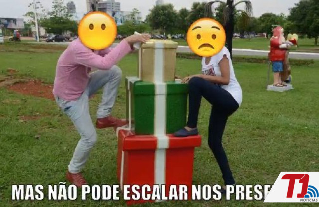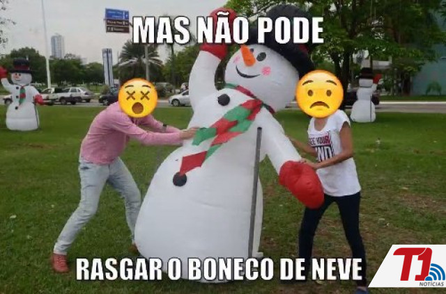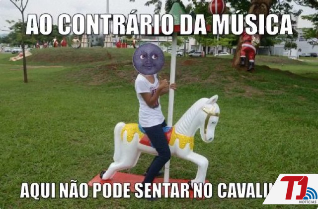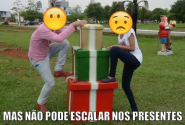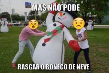 Em outras imagens estão que “mas não pode escalar nos presentes”, “nem roubá-los”, “rasgar o boneco de neve”, e ainda, “ao contrário da música, aqui não pode sentar no cavalinho”.