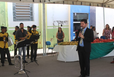 Durante a solenidade cívica, o Prefeito Padre Gleibson Moreira, entregou dois tratores, com carreta e grade niveladora para a agricultura familiar, através do Programa Terra Forte.