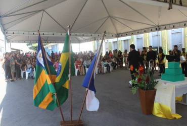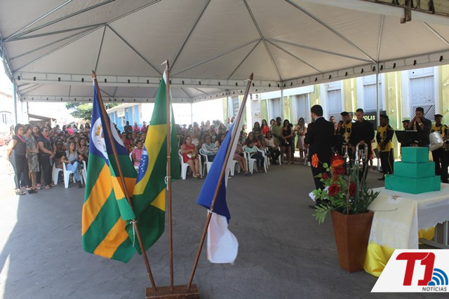Após a missa, autoridades e comunidade, seguiram para a Praça Central – Liberato Póvoa, onde participaram do momento cívico em comemoração ao aniversário da Terra das Dianas.