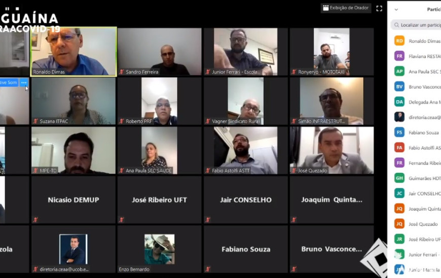 O prefeito de Araguaína, Ronaldo Dimas, realizou nessa quarta-feira, 22, mais uma reunião de trabalho on-line com representantes de vários setores do Município. As lives são públicas e podem ser assistidas pelas redes sociais da Prefeitura. Entre os temas discutidos na reunião está o aumento da flexibilidade para funcionamento de mais setores da economia local, como as instituições de ensino particulares e mototáxis. Para isso, é aguardado o início dos testes por amostragem da população no Município, que devem ser iniciados neste fim de semana.