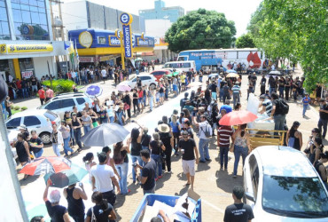 Na manhã desta quinta-feira, 15, centenas de manifestantes se reúnem na frente da prefeitura, na Avenida JK, enquanto representantes do Sintet, vereadores e secretários municipais discutem medidas para o fim da greve.
