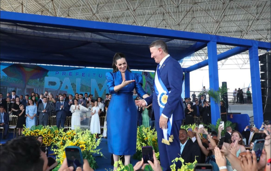Em cerimônia realizada nesta quarta-feira, 1º de janeiro, no Espaço Cultural José Gomes Sobrinho, Eduardo Siqueira Campos recebeu a faixa de prefeito de Palmas das mãos da ex-prefeita Cinthia Ribeiro. O evento, que marcou oficialmente o início de sua gestão, também foi palco da posse do novo secretariado e do anúncio de projetos prioritários para a capital.