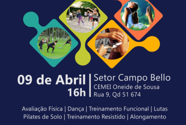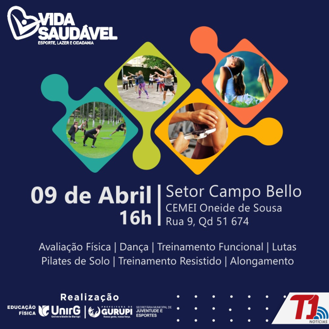 Dança, treinamento funcional, pilates de solo e alongamento são algumas das atividades que estarão disponíveis para a comunidade gratuitamente neste sábado, 9, às 16h, no Cemei Oneide de Sousa, no Setor Campo Bello. O evento é promovido pelo projeto Vida Saudável, do curso de Educação Física da Universidade de Gurupi (UnirG), em parceria com a Secretaria Municipal de Juventude e Esportes.