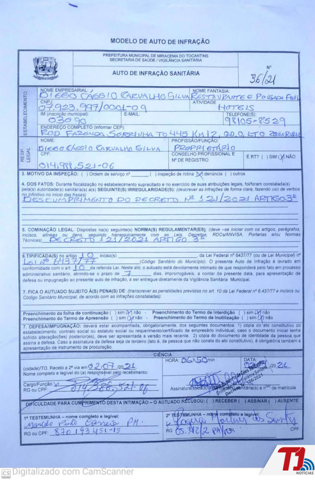 Ao ser questionada se o evento, que começou ontem, 2, e continua neste sábado, 3, e provavelmente amanhã, 4, está funcionando com permissão, a Prefeitura de Miracema informou que ainda não foi notificada oficialmente.