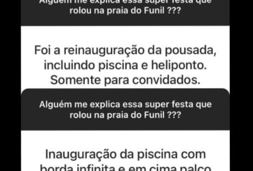 Procurada pela reportagem do T1 Notícias, a assessoria da Praia do Funil informou na manhã deste domingo, 04, que "tanto avisamos a prefeitura, conforme ofício anexo, quanto temos permissão para operar haja visto nosso alvará. Protocolamos os ofícios junto a prefeitura informando sobre o evento", ressaltaram.