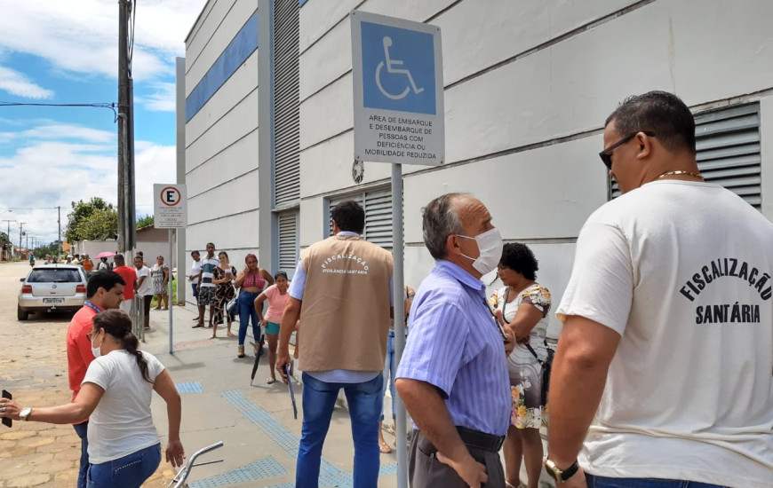 Após a notificação, os servidores da Visa organizaram a fila de acordo com as recomendações de distanciamento social para prevenção ao contágio da Covid-19.