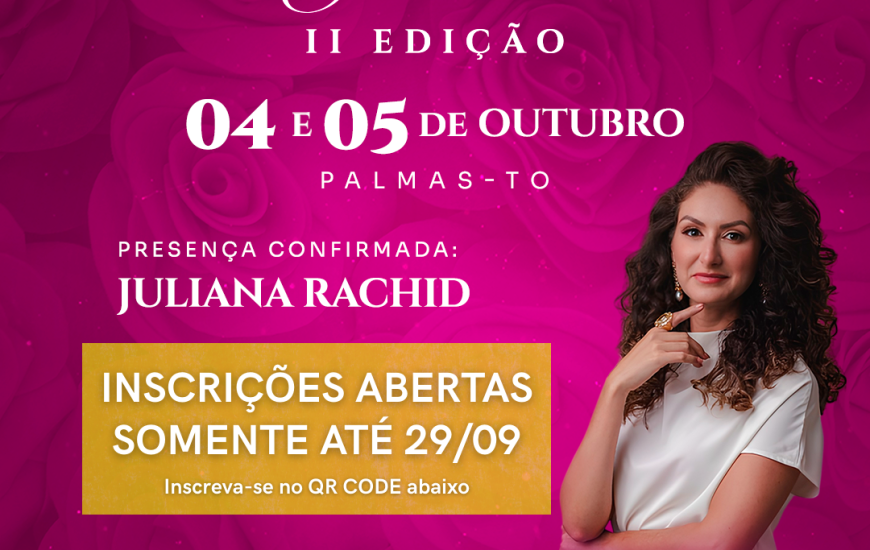 Juliana Rachid acumula mais de 300 mil seguidores somente no instagram e está vindo ao Tocantins pela primeira vez. Na internet, publica diariamente vídeos que ajudam mulheres cristãs a compreenderem seu propósito de vida e identidade. Além disso, viaja o Brasil inteiro palestrando em eventos católicos de mulheres, sendo reconhecida como referência nesta área.