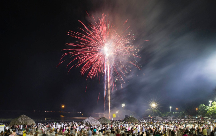 Com a faixa de areia da praia lotada, uma multidão aguardou ansiosa pela queima dos fogos que brilhou o céu da orla de Palmas por cerca de 10 minutos, após a contagem regressiva em uma só voz pelo público para a chegada de 2020. Desta vez, os fogos foram colocados na extremidade da praia, para ficar mais próximo ao público, respeitando a segurança dos visitantes.