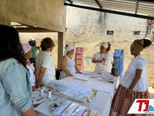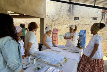Já a Oficina de Confecção e Cuidados com Roupas de Terreiro apresentou conteúdos sobre o simbolismo das vestimentas, técnicas básicas de costura, conservação das indumentárias e confecção de peças como saias, panos e ojás, com foco também na geração de renda. A atividade foi conduzida pela Ekedje Bruna e pela Iyalorixá Clara Conceição.