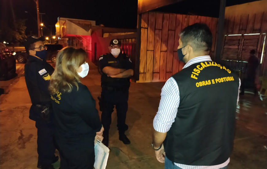 Na noite de quinta-feira, 12, durante patrulhamento realizado em pontos estratégicos das regiões Norte e Sul, as equipes flagraram alguns estabelecimentos atendendo ao público após o horário permitido, e com problemas na documentação comercial relativos à liberação de funcionamento. A ação conjunta resultou na aplicação de dois autos de infração, e seis notificações nos empreendimentos vistoriados.